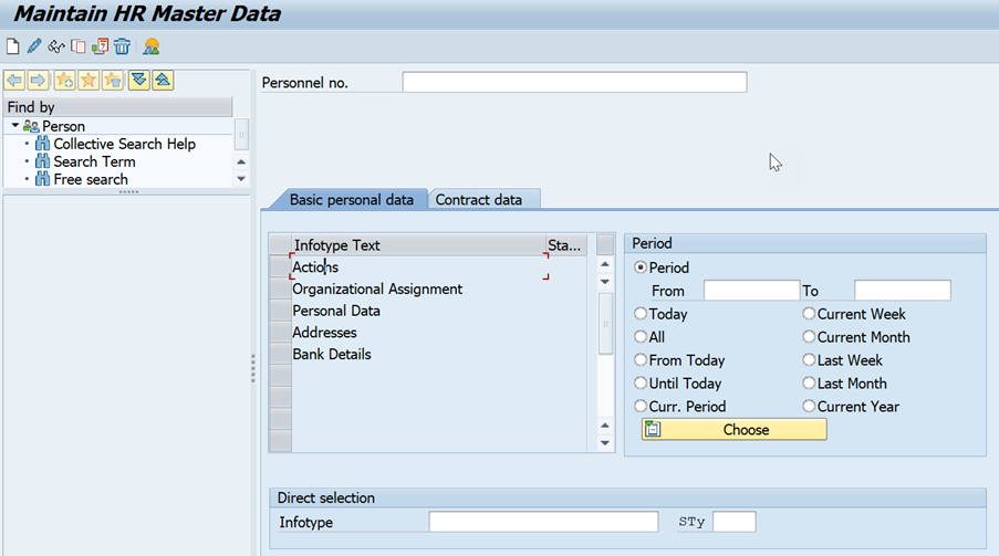 Si hay integración real, por ejemplo, con Success Factors u otra solución de recursos humanos de terceros, el sistema S/4HANA depende de un mini-maestro de recursos humanos y es necesario programar el informe de sincronización /SHCM/RH_SYNC_BUPA_FROM_EMPL como un trabajo en segundo plano que crearía BPs de empleados y vincularía automáticamente usuarios comerciales. Este mini-maestro de recursos humanos también se puede mantener localmente utilizando la transacción PA30 o PA40.