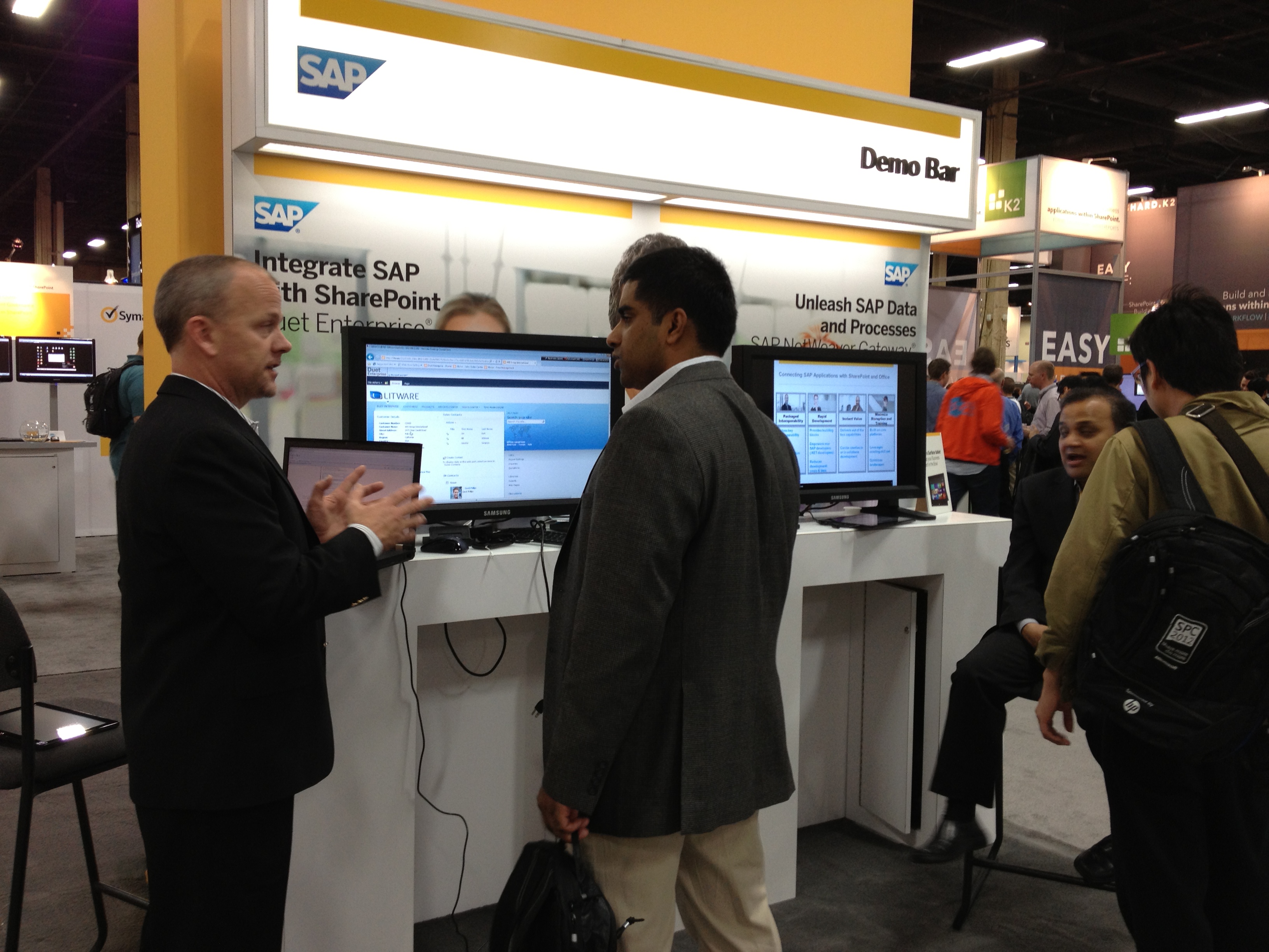 Como equipe expositora da SAP IW, estamos aqui para demonstrar o poder do SAP Netweaver Gateway e do Duet Enterprise, que conecta os poderosos suites de negócios da SAP com o rico portfólio de produtos da Microsoft, incluindo SharePoint, Office 2013, Windows 8 e Windows Phone, sem mencionar o recém-lançado dispositivo Microsoft Surface! Com a ajuda do SAP Netweaver Gateway e do Duet Enterprise, o conteúdo rico do backend da SAP agora está pronto para ser consumido como feeds Odata por essas numerosas tecnologias e dispositivos da Microsoft.