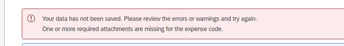 Mensaje de error mostrado cuando un trabajador intenta enviar un gasto contra un código de gasto sin un recibo adjunto.