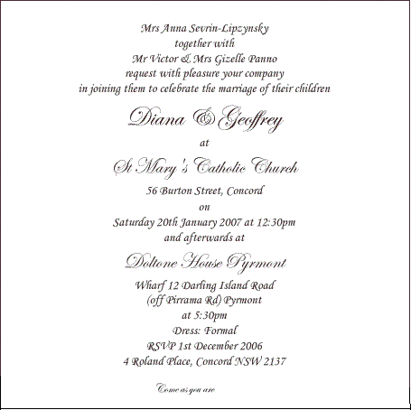 Eu não recebo muitos convites de White Tie , mas isso envolve alugar "bib and tucker" (fraque), e para sua esposa estamos no nível de vestidos de baile e tiaras. O mais comum Black Tie permite ao homem tirar a poeira de seu confiável DJ ("smoking"), mesmo que agora esteja um pouco apertado, mas novamente sua companheira provavelmente está comprando novos sapatos, bolsa e outros acessórios. Tudo muito estressante. O melhor tipo de convite é aquele que diz Venha como Você É. Um convite para "Venha como Você É" significa que você não precisa comprar nada novo, não precisa atualizar seus sapatos ou gastar tempo fazendo seu cabelo. É o convite mais acolhedor.